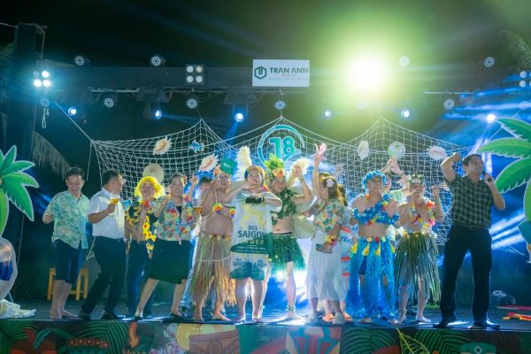 Happy Team đã mang đến một đêm Gala Dinner đậm sắc màu Hawaii dành cho 150 thành viên Trần Anh Group, chào mừng kỷ niệm 18 năm thành lập. Không gian tiệc ngoài trời thoáng đãng, rộn ràng cùng những tiết mục sôi động và màn hóa trang đậm chất Hawaii đã thổi bùng bầu không khí lễ hội. Khoảnh khắc lửa trại bừng sáng như thắp lên niềm tin, tinh thần đoàn kết và gắn kết tất cả mọi người trong một đêm đáng nhớ, tràn đầy cảm xúc.