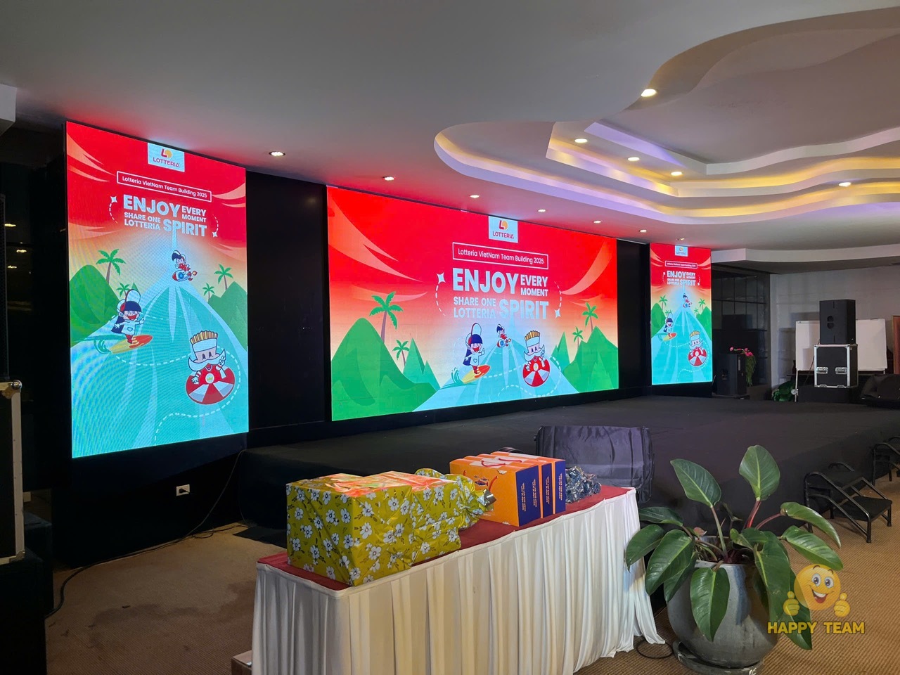 Happy Team hân hạnh đồng hành cùng đơn vị tổ chức để mang đến một đêm Gala đầy bùng nổ dành cho 175 thành viên đại gia đình Lotteria. Chương trình được xây dựng chỉn chu từ ý tưởng chủ đề, không gian cho đến từng tiết mục biểu diễn, tạo nên một hành trình cảm xúc trọn vẹn. Những khoảnh khắc thăng hoa, những màn giao lưu sôi động cùng phần truyền tải thông điệp ý nghĩa đã giúp các thành viên thêm gắn kết và tự hào về màu áo chung. Đêm hội không chỉ là một buổi tiệc, mà còn là dấu ấn đẹp – nơi tinh thần đồng đội, sự nhiệt huyết và niềm vui lan tỏa mạnh mẽ trong từng phút giây.