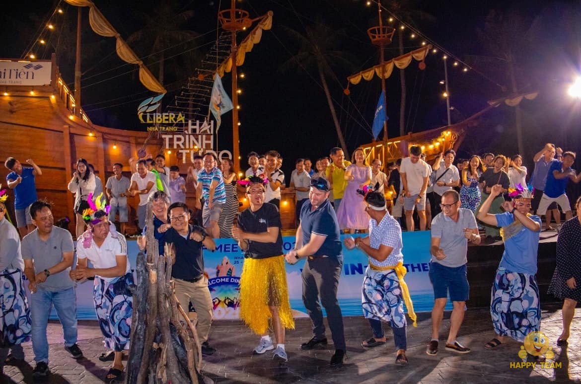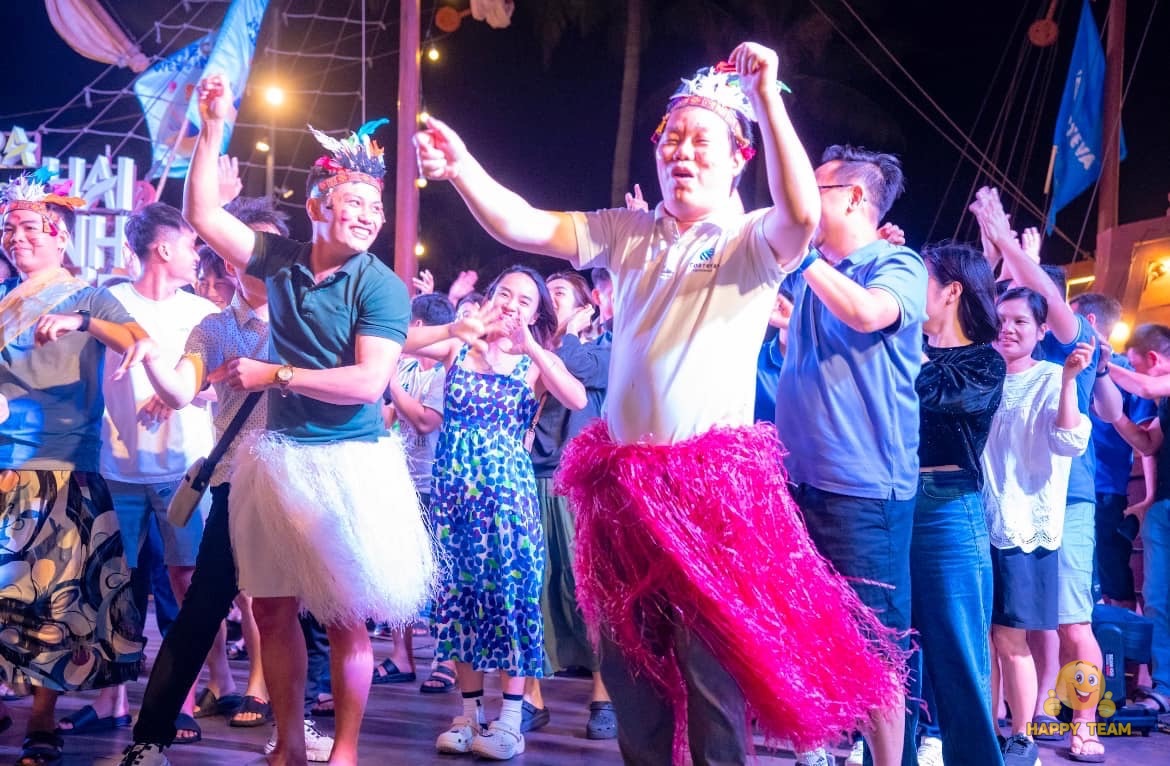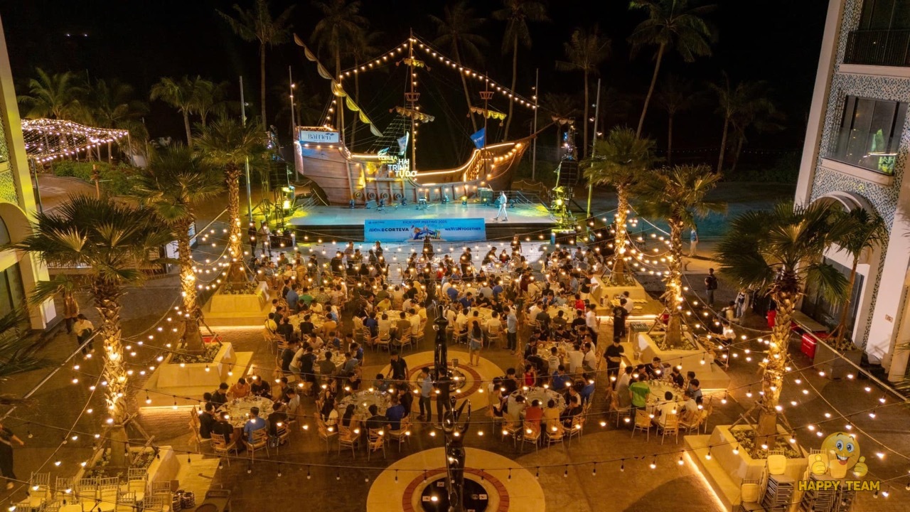 Happy Team phối hợp cùng đơn vị tổ chức mang đến một đêm Welcome Party đầy sắc màu biển cả dành cho 200 thành viên Corteva. Không gian ngoài trời thoáng đãng hòa cùng phong cách trang trí mang hơi thở đại dương đã tạo nên một bữa tiệc mới mẻ và tràn đầy năng lượng. Điểm nhấn đặc biệt của chương trình là phần hóa trang già làng hoang dã, kết hợp cùng không khí đốt lửa trại – đưa mọi người trở về cảm giác mộc mạc của thời xưa, nơi sự ấm áp và gắn kết được thắp lên mạnh mẽ. Tất cả hòa quyện tạo nên một buổi tối độc đáo, gần gũi và đầy cảm xúc, mở đầu hành trình sự kiện một cách ấn tượng và đáng nhớ.